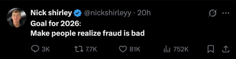 That post earned 80,000 likes and 740,000 views in 20 hours. It landed just days after his investigative video exposing Minneapolis daycare centers went viral on YouTube.