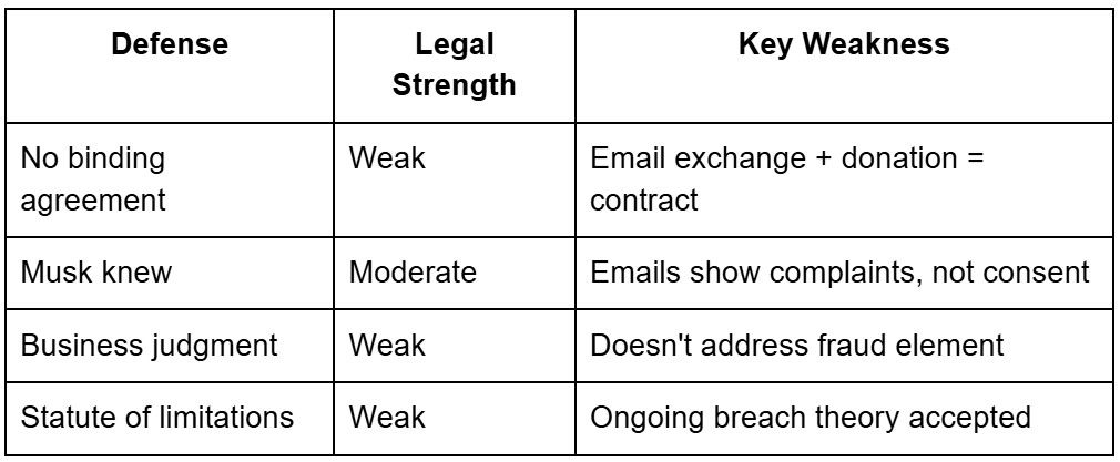 Problem: The judge noted those emails are complaints about company direction, not evidence Musk agreed to anything. As TechCrunch reported, "these emails show Musk objecting, not consenting."