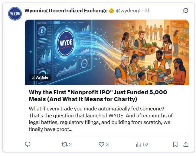 I'm a co-founder of WYDE and hold $EAT tokens. This creates a conflict of interest. This is NOT financial advice. Token values fluctuate. Always do your own research.